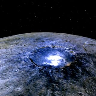 Uno de esos reflejos se encuentra en el cráter Occator, una oquedad de 90 kilómetros de ancho y cuatro kilómetros de profundidad en cuyo interior aparece y desaparece una brillante neblina a un ritmo diario.