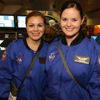 LOS ÁNGELES, ESTADOS UNIDOS (13/JUN/2013).- Adriana Álvarez y Mariela Aguirre, profesoras de El Paso (Texas), vuelan hoy a la estratosfera a bordo del avión SOFIA de la NASA con el fin de aprender sobre astronomía infrarroja para después llevar esos conocimientos a sus alumnos.