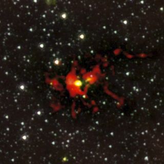 La estrella embrionaria observada se sitúa en un útero estelar en crecimiento que tiene quinientas veces la masa del sol y donde hay mucho material fluyendo hacia el interior.