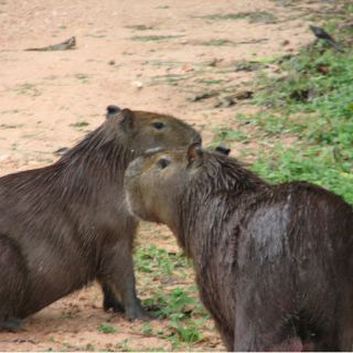 Los capibaras son "vecinos" de una pareja de tapires, que pertenecen al mismo orden que los caballos, y se parecen un poco a los rinocerontes, que son sus parientes vivos más cercanos.