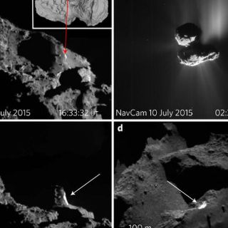 Durante los dos años que Rosetta pasó observando el cometa, se detectaron con cierta frecuencia emisiones breves y repentinas. Aunque se ha debatido mucho sobre sus desencadenantes, estas emisiones parecen deberse al derrumbamiento de superficies débiles y erosionadas, que dejaron expuestos materiales volátiles que se calentarían súbitamente.