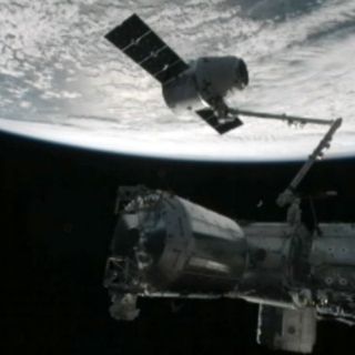 WASHINGTON, ESTADOS UNIDOS (10/OCT/2012).- El vehículo de carga y sin tripulación Dragon completó una cautelosa aproximación a la Estación Espacial Internacional y, sujeto por el brazo robótico del puesto orbital, atracó en uno de sus módulos, informó la NASA.