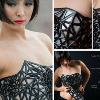 Los diseñadores Xuedi Chen y Pedro G.C Oliveira diseñaron un corsé femenino impreso en 3D que se compone de una estructura con paneles de plástico que se hacen transparentes cada vez que una mujer publica en Facebook, hace check in o cualquier otra acción cotidiana con el móvil por una conexión con Bluetooth.