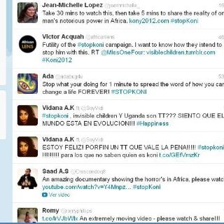 En lo que va de la mañana de este miércoles el tema ha logrado mantenerse entre los Trending Topics de todo el mundo con el Hash Tag #StopKoni y Uganda. También los usuarios de Facebook de han unido a este movimiento compartiendo en sus muro’s información sobre el tema o el video.