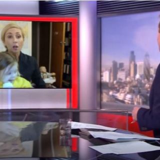 En las imágenes puede verse a "la profesora" hablando frente al conductor del noticiario, cuando de pronto entra la pequeña a interrumpir la conversación, sin embargo, en lugar de hacer a la niña a un lado, la pone en su regazo, le da un biberón y juega con ella.