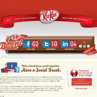 El software, Social Break, envía automáticamente actualizaciones aleatorias a las cuentas de los usuarios en Facebook, Twitter y LinkedIn. Se lanzará oficialmente en Singapur a finales de esta semana y se descarga de forma gratuita en kitkat.com.sg/socialbreak.