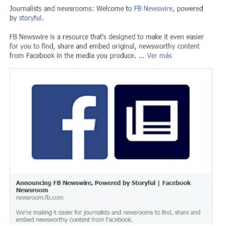 "FB Newswire agrega contenido noticioso compartido públicamente en Facebook por personas y organizaciones de todo el mundo para que los periodistas utilicen en sus reportes.