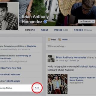 El botón se llamará Ask (Preguntar) al lado de Relationship Status (Situación sentimental) y está comenzando en algunos perfiles.