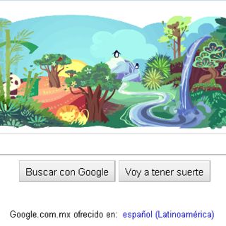 GUADALAJARA, JALISCO (22/ABR/2011).- Google se integra a la celebración internacional del ‘Día de la Tierra’ que data desde 1970, como ya es costumbre el buscador de Internet conmemora esta fecha con un ‘doodle’ especial e interactivo, en el que cada vez que se señala alguno de los animales que aparecen en el paisaje, estos realizan un tipo de actividad para hacer más real la imagen.