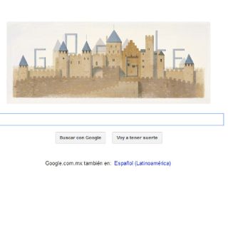 El buscador de Mountain View muestra su nombre en su página de inicio y al fondo el Cité de Carcasona, castillo ubicado a orillas del río Aude, en Francia, y una de sus restauraciones más polémicas, por sus atrevidas soluciones y añadidos no históricos.