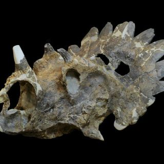 Se trataba de un cráneo casi completo que reveló era de un dinosaurio diferente a los que se conocen hasta ahora, aunque con características parecidas a las de los triceratops, que tienen una gola ósea craneal y tres cuernos, dos sobre los ojos y uno más pequeño en la nariz.