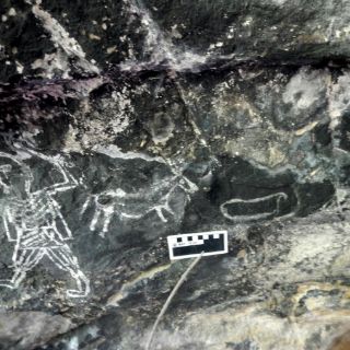 De una de las cuevas se hallaron seis paneles, tres de ellos con figuras antropomorfas, zoomorfas y geométricas trazadas con pintura blanca.