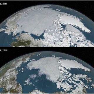El nivel mínimo del 2016 año es de casi 2.59 millones de kilómetros cuadrados (un millón de millas cuadradas) menor que el promedio registrado desde 1979 al año 2000, lo cual equivale al tamaño de Alaska y Texas combinadas.