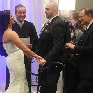 Ficarra pudo pararse y caminar durante la ceremonia en Syracuse el sábado con la ayuda exoesqueleto robótico que funciona a batería, llamado Ekso. Ficarra declaró al diario Syracuse Post-Standard que ha estado conduciendo al centro de rehabilitación en Allentown, Pennsylvania, todas las semanas desde abril para aprender a caminar con el aparato.