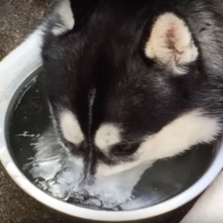 En un video, la hembra mete su hocico al tazón de agua y comienza a ''soplar''