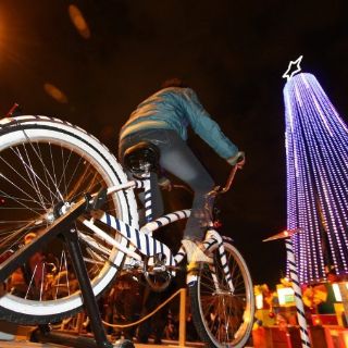 Iluminan árbol de Navidad con la energía de bicicletas en Puebla