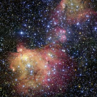 ESO) difundió hoy una impactante imagen de una "ornamentación estelar", un peculiar efecto óptico en rosas y azules detectado en una nebulosa de la Gran Nube de Magallanes, a unos 163 mil años luz.