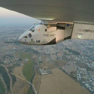 El aparato, pilotado por el suizo Bertrand Piccard, vuela día y noche sólo con energía solar