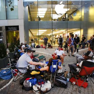 También es posible ver la "tradicional" fila que se hace afuera de las principales tiendas de Apple en los Estados Unidos, la gente lleva sillas, colchonetas, cobijas, sombrillas y alimentos para aminorar la espera.