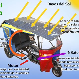 La popular motocicleta de tres ruedas y con techo que se usa en países como Perú, Ecuador, Bolivia, China o la India con diferentes nombres podría ser un medio de transporte limpio y ecológico si, como defiende el ingeniero, se colocan en ella paneles solares para transformar la energía solar en electricidad.