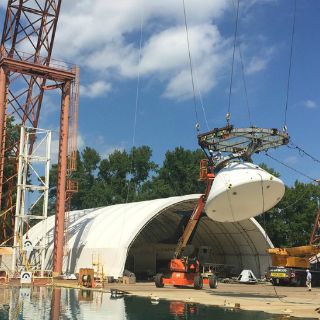 Un péndulo tirará una cápsula de prueba a una piscina en la instalación de Langley de la NASA, en Hampton, Virginia. Adentro habrá muñecos de prueba con trajes espaciales, en representación de una mujer de 48 kilos (105 libras) y un hombre de 100 kilos (220 libras).