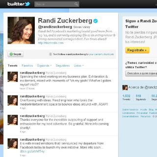 CIUDAD DE MÉXICO (07/AGO/2011).- "Es con emociones encontradas que yo anuncio hoy mi salida de Facebook para iniciar mi propia iniciativa. Más información pronto", tuiteó la directora de Marketing de la red social a través de su cuenta @randizuckerberg.