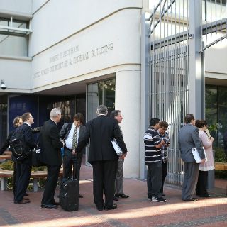 LOS ÁNGELES, ESTADOS UNIDOS (30/JUL/2012).- La selección de los diez miembros del jurado protagonizó hoy la primera jornada del juicio que enfrenta a Apple y Samsung en un tribunal federal californiano por una disputa de patentes que podría condicionar el futuro del boyante mercado de las tabletas y los teléfonos inteligentes.