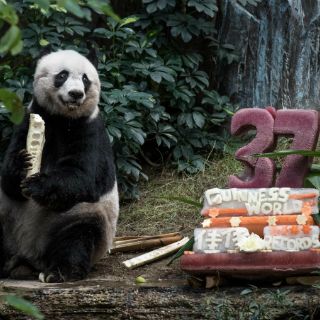 En julio de 2015, la panda gigante fue obsequiada con un pastel de cumpleaños de helado y zumo de frutas coronado con el número 37.