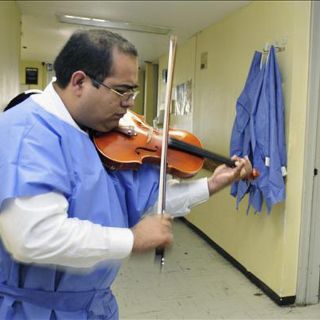 El promotor de lectura Ricardo Alonso y el violinista Vidal Ortíz son los encargados de animar y crear un ambiente positivo para los pacientes