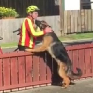 GUADALAJARA, JALISCO (05/AGO/2016).- Michael Collins publicó en su cuenta de Facebook un video en el que muestra a su perro, de raza pastor alemán, en una actitud muy cariñosa al momento en el que el cartero llega a su domicilio a entregar la correspondencia.