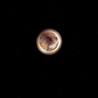 Plutón se puede observar con un hemisferio norte brillante y Caronte con una región polar oscura.