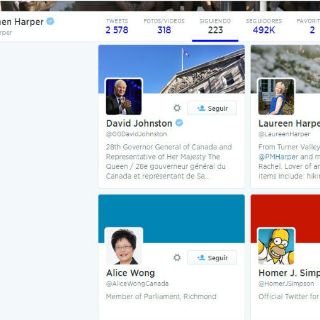Harper era seguidor del patriarca de la conocida familia de la serie Los Simpson, pero poco después de la publicación del artículo de CBC, Homero había dejado de ser parte de la lista de las 223 cuentas a las que el líder conservador estaba suscrito ( @pmharper).
