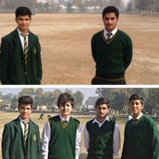 En la foto original, se ve a cuatro estudiantes, portando su uniforme y posando para la cámara. Ahora, en la nueva imagen, se ve a Talha Munir y Hassan Javen Khan pero, también, se aprecia el espacio vacío en donde deberían estar sus amigos.