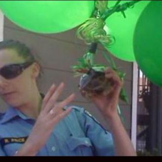 Chanelle Wright dijo al canal de televisión KGTV-TV que ella y sus vecinos encontraron a la tortuga, pegada a los globos verdes y azules y atrapada en la copa de un eucalipto en la localidad de Oceanside.
