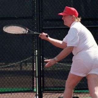Los usuarios de la red social no perdieron la oportunidad para burlarse de Donald Trump. En la imagen difundida aparece con el característico atuendo blanco para practicar tenis, pero una cosa en especial llamó la atención: el ajustado short que usa y que además trasluce su ropa interior.