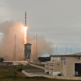 Previsto inicialmente el lunes, el lanzamiento fue aplazado 24 horas por el fuerte viento que soplaba encima del Centro espacial Guayanés.