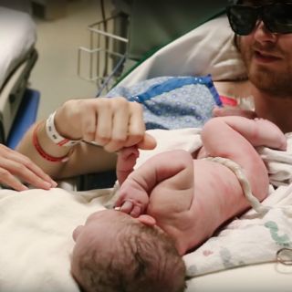 El llanto del pequeño irrumpe en la sala y Cagney expresa: ''¡Dios mío!'', mientras él también llora y sus muecas exhiben la alegría que siente. Levon Robbie Wenk nació el 18 de septiembre de este año, a las 02:12 horas y pesó poco más de tres y medio kilogramos, según testimonia el breve documental. El hombre agradece al equipo médico por la asistencia a su esposa y a su bebé.