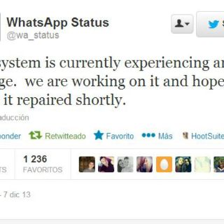 GUADALAJARA, JALISCO (07/DIC/2013).- La cuenta oficial de Twitter del servicio de mensajería WhatsApp confirma la avalancha de comentarios de usuarios de redes sociales que reportan, la tarde de este sábado, problemas de conexión en la aplicación.