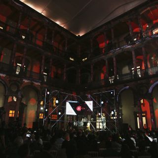 Para comenzar el evento inaugural, se ofreció un espectáculo de video-mapping. La audiencia, ubicada en el patio central del edificio Arróniz, pudo apreciar cómo dos muros interiores del espacio parecían cobrar movimiento y color a través de la tecnología aplicada.