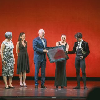 El Conjunto de Artes Escénicas de la Universidad de Guadalajara otorgó un reconocimiento a los bailarines Isaac y Esteban Hernández, luego de presentarse con el espectáculo “Expresiones Triple Bill” en este prestigiado recinto. El reconocimiento le fue otorgado de las manos de Raúl Padilla, presidente del patronato del Conjunto de las Artes.