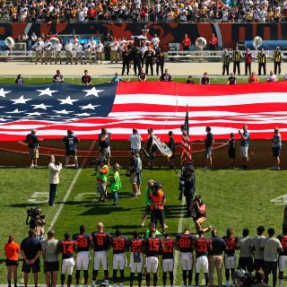 "No vamos a participar en política", dijo el entrenador de los Acereros Mike Tomlin a la cadena CBS. "Somos jugadores de futbol, somos entrenadores de futbol. No vamos a participar en el himno hoy. No para faltar el respeto al himno, sino para retirarnos de la circunstancia"