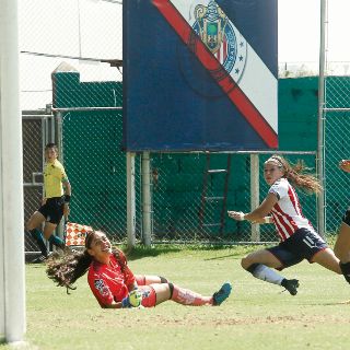 El partido era intenso, sin un dominador aparente, disparos de larga distancia por parte de ambos conjuntos, pero no pasaba nada, hasta que apareció Norma Palafox al minuto 21 para darle a las Chivas la única anotación del cotejo y con esto, el triunfo de oro que las catapulta al segundo lugar del grupo; esto, ante una gran asistencia de aficionados que acudieron a Verde Valle para apoyar a las jóvenes, sin importar si eran del Rebaño o de Monterrey.