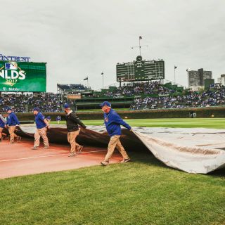 Pese a que el diamante del mítico Wrigley Field fue cubierto con una lona gigante para evitar mayores daños a su superficie, la gran cantidad de agua que cayó lo dejó en condiciones no aptas para el desarrollo de este cuarto encuentro divisional.