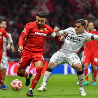 Jorge Rodríguez filtró un pase en profundidad que dejó a Diego González frente al arco; el atacante remató desde el centro del área, pero el balón se estrelló en el larguero y se salvó Toluca.