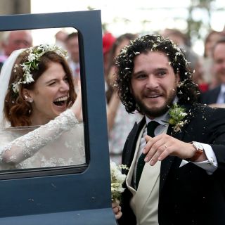 Los actores Kit Harington y Rose Leslie, que interpretaron a la pareja "Jon Snow" e "Ygritte" en la saga televisiva fantástica "Game of Thrones", se casaron este sábado en Escocia.