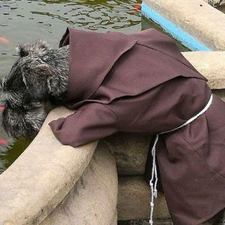 Conoce a 'Fray Carmelo', el schnauzer que usa un hábito franciscano