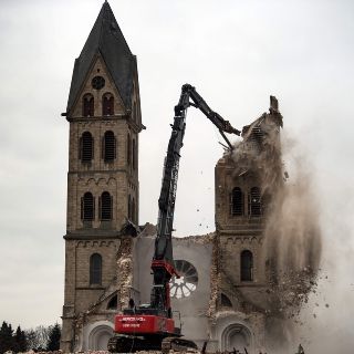 El templo desacralizado de San Lamberto en Erkelenz-Immerath, Alemania, es demolido para realizar la explotación de minas a cielo abierto por parte del proveedor de energía RWE Power. Habitantes del poblado fueron reubicados. AFP/DPA/F. Gambarini