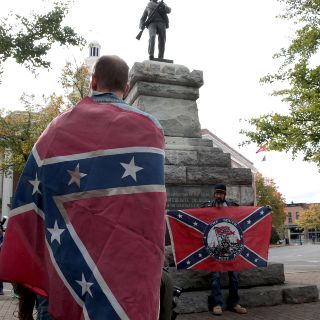 Miembros de la Liga del Sur, uno de los grupos nacionalistas que ayudaron a organizar la manifestación, portaron una bandera confederada y un letrero que decía "Genocidio cultural del sur", de acuerdo con el diario USA Today.
