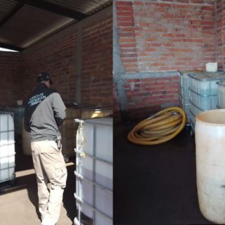Tras cumplimentar una diligencia de cateo, personal de la FGR Jalisco aseguró varios contenedores con más de 7 mil litros de combustible.
