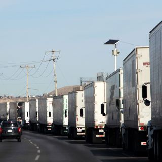 Tráilers hacen fila en Tijuana, Baja California, para ingresar a Estados Unidos por la zona de exportación de la Garita de Otay, AFP/G. Arias